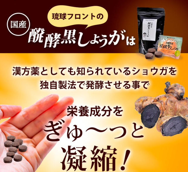 【原材料名】醗酵黒しょうが(沖縄県産)、醗酵黒ニンニク(国産)有機黒マカ、亜鉛、ステアリン酸Ca